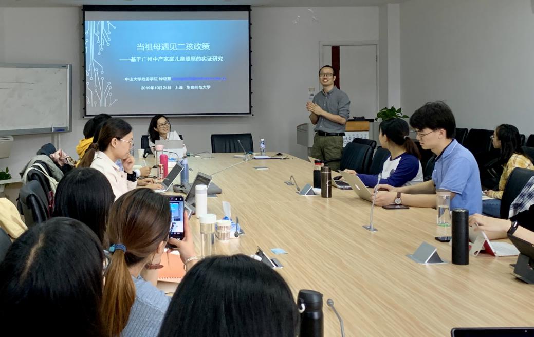 2019年10月24日下午,中山大学政务学院钟晓慧老师在法商北楼525为同学们带来了题为“当祖母遇见二孩政策:代际合作育儿模式的可持续性研究”的学术讲座。本次讲座由社会学系姚泽麟老师主持,吸引了近四十名各专业和各年级的同学参与。社会学系薛红老师、人口学所陈丽梅老师也参与了本次讲座。