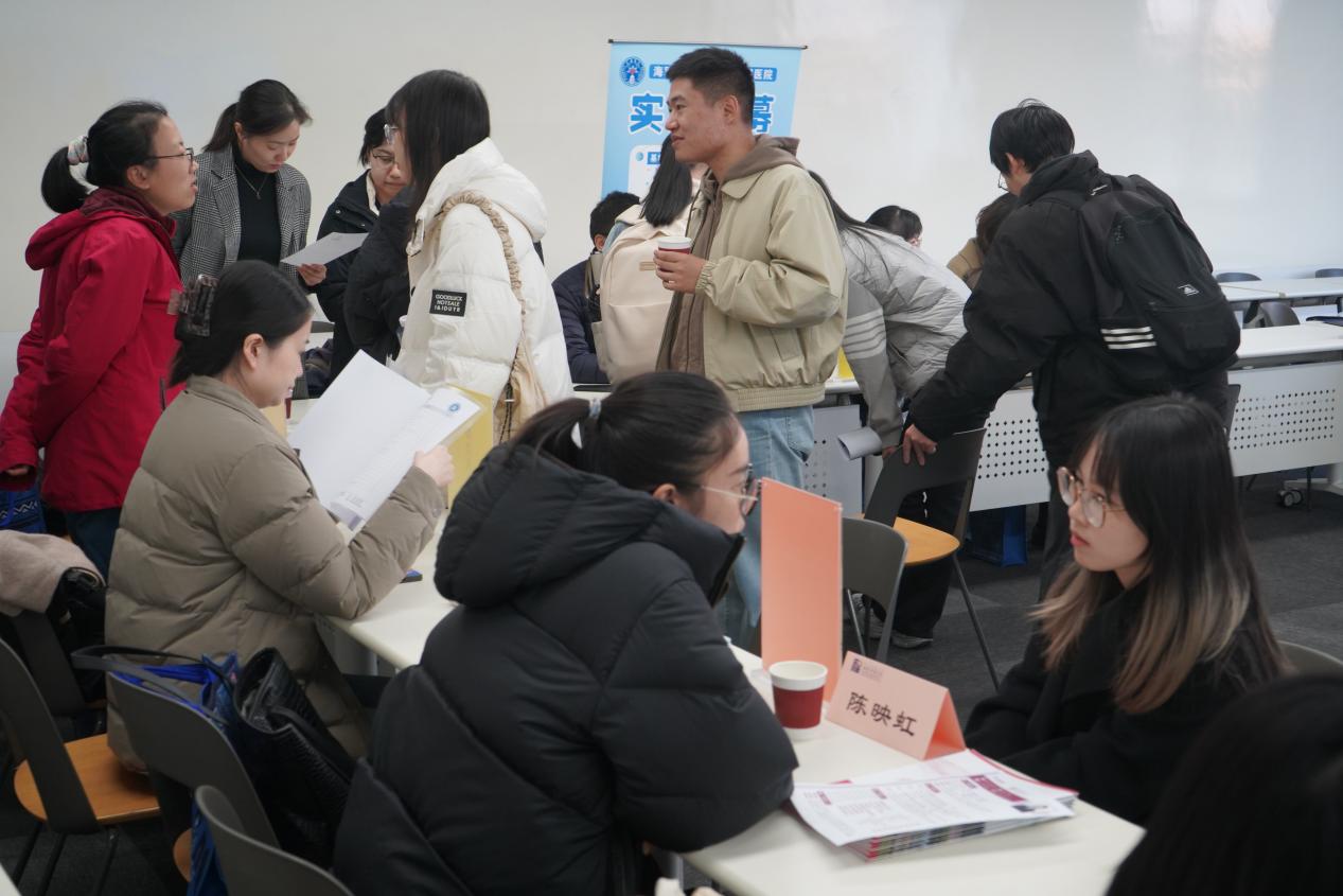 在场的学生、教师与实习机构的督导老师及负责人进行了面对面交流,就实习岗位及相关需求进行了精准对接。此次活动为机构与学生之间的深度沟通搭建了优质平台,双方畅所欲言,简历投递井然有序,现场氛围热烈融洽。